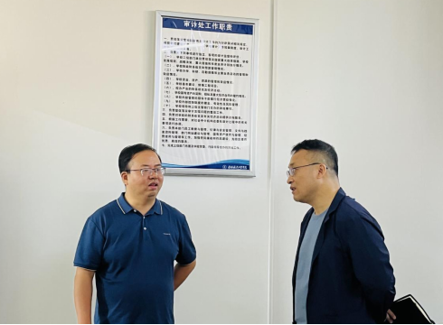 吴尽昭校长认真听取汇报,了解了当前审计处发展的现状、困难、机遇和挑战,并与审计处领导班子进行深入的沟通交流。他充分肯定了审计处成立以来取得的成绩,并对审计处下一阶段发展提出指导性意见。